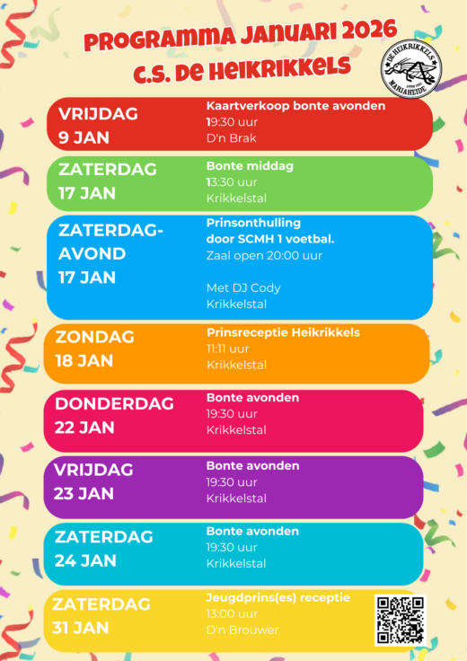 Namens c.s. De Heikrikkels willen wij alvast aankondigen dat er in 2026 een nieuw carnavalsprogramma komt voor Mariaheide. Op dit moment zijn wij nog volop in overleg om een gevarieerd programma samen te stellen datLees verder…